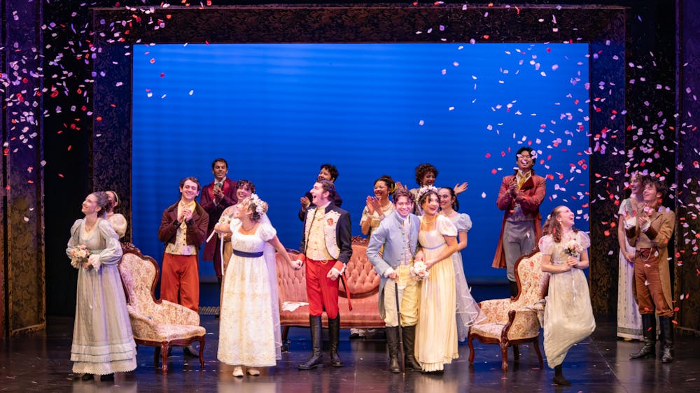 After hosting a peculiar set of particularly hit-and-miss productions, the Brandeis Theater Department held its opening night for “Sense and Sensibility” this past Friday, March 6. This Kate Hamill adaptation of Jane Austen’s novel was, to our great relief, nothing short of spectacular. Its storytelling followed the lives of an extensive cast of characters in great detail, but had for its protagonists the older Dashwood sisters and their paths to “true” love. As great as Austen’s plot may have been and as excellent as most of the actors were in portraying such a story, the Brandeis production had an unfortunate abundance of “technical” errors — that is to say problems related to the backstage crew — and a notable presence of glaring “theater sins,” a term often used in theater education to describe major issues that one must avoid when producing a show. That is not to say that this production was unsatisfactory because, as a matter of fact, most audience members were delighted by the spectacle. Nonetheless, the issues that were too noticeable to be ignored in a proper review.